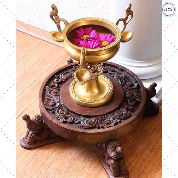 The Urli is a traditional South Indian vessel reimagined for the modern “Zen” home. This 2026 version features a heavy, hand-beaten brass bowl resting atop a tripod stand made of dark-stained wood. The contrast between the golden metal and the dark wood is a hallmark of “Indo-Chic” décor. In 2026, it is used as a sensory centerpiece—filled with water and floating flowers (like marigolds or roses) and a few drops of essential oils. The brass is 100% rust-proof, and the wooden stand is treated with water-resistant wax. It is a perfect lifestyle product for entryways to create an immediate sense of peace and traditional hospitality for arriving guests.