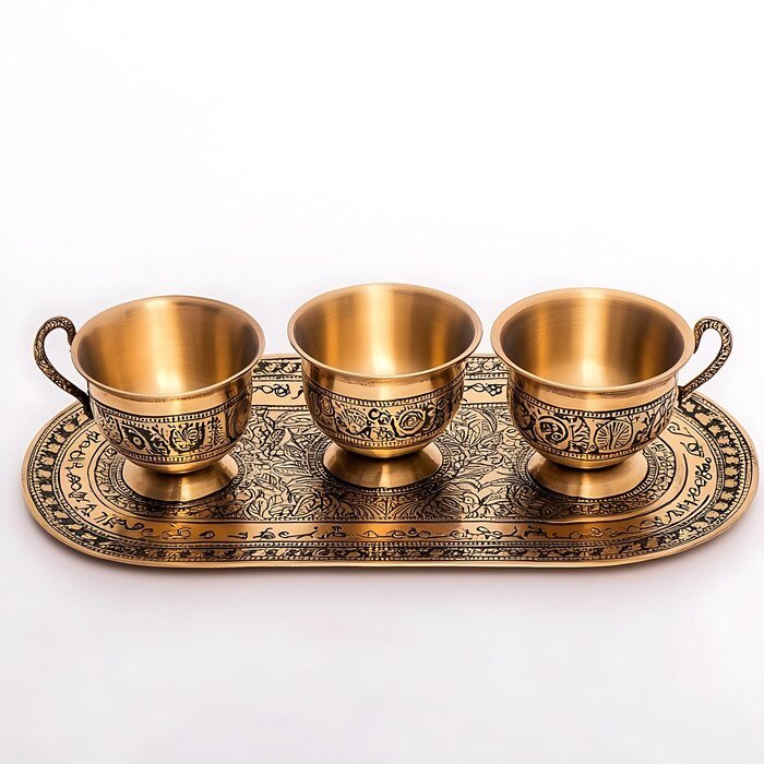This comprehensive Ayurvedic set includes a 99.9% pure copper bottle paired with a set of matching copper cups or glasses. This set is designed for the home or bedside, encouraging the traditional habit of storing water in a copper vessel overnight and drinking it first thing in the morning. The bottle acts as the primary infusion chamber, while the cups allow for easy sharing and consumption. Like all pure copper vessels, these items are antimicrobial and alkaline-boosting. The set often features a matching aesthetic—either polished, hammered, or printed—adding a touch of traditional Indian luxury to your dining table. This set is 100% sustainable and helps eliminate the need for plastic pitchers and cups in the household. It is a beautiful way to integrate the “Tamra Jal” ritual into the entire family’s daily wellness routine.