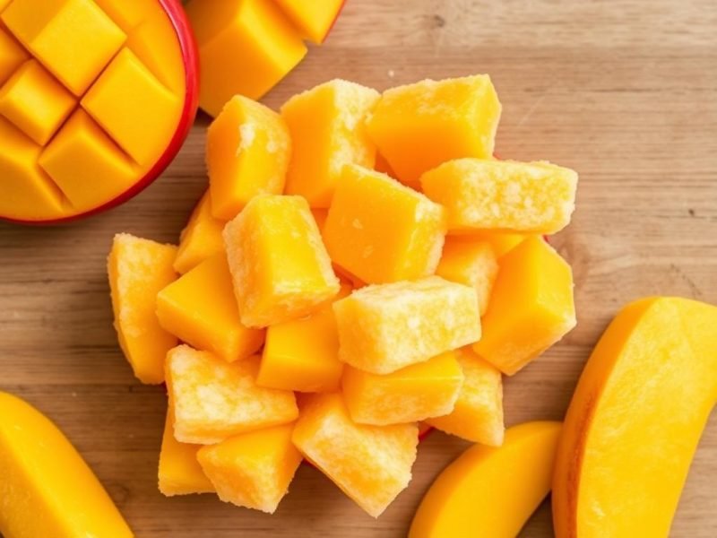 Frozen mango slices are carefully selected from the finest ripe mangoes, peeled, sliced, and frozen to maintain their naturally sweet and tropical taste. These vibrant golden slices are packed with fibre, vitamins, and antioxidants, perfect for smoothies, ice creams, fruit bowls, and more.