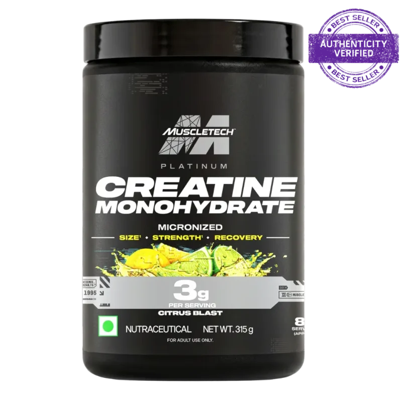 MuscleTech Platinum Creatine Monohydrate is a high-quality micronized creatine supplement designed to boost strength, power, and muscle performance. It delivers 3g pure creatine per serving, helping increase ATP energy production so you can train harder, lift heavier, and recover faster. Its clean and simple formula makes it ideal for daily use and easy stacking with other supplements.