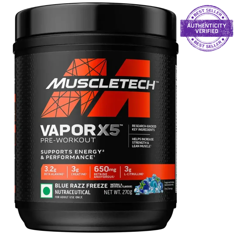 MuscleTech Vapor X5 is an advanced all-in-one pre-workout supplement designed to deliver explosive energy, intense focus, and enhanced muscle performance. Its scientifically formulated blend includes creatine, beta-alanine, citrulline, and caffeine, helping boost endurance, strength, and workout intensity. This powerful formula supports both mental alertness and physical performance, making it ideal for high-intensity training.